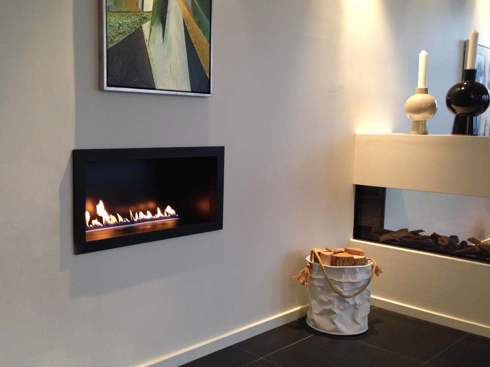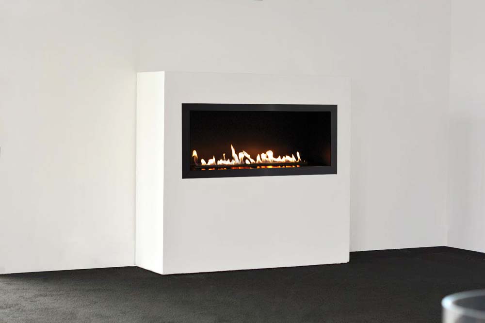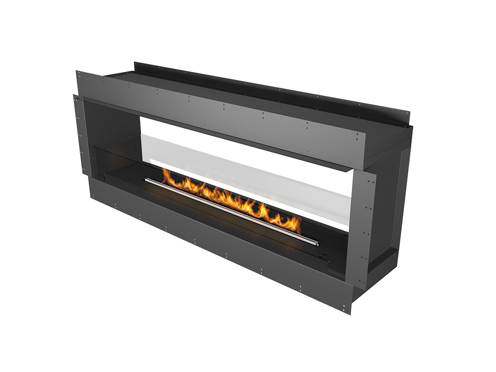 Habillage égégant pour le foyer de combustion PRIMEFIRE. Plusieurs versions sont disponibles : caisson avec ouverture de face, ouverture face et côté droit, ouverture face et côté gauche, ouverture trois faces, séparateur de pièce ou version tunnel.