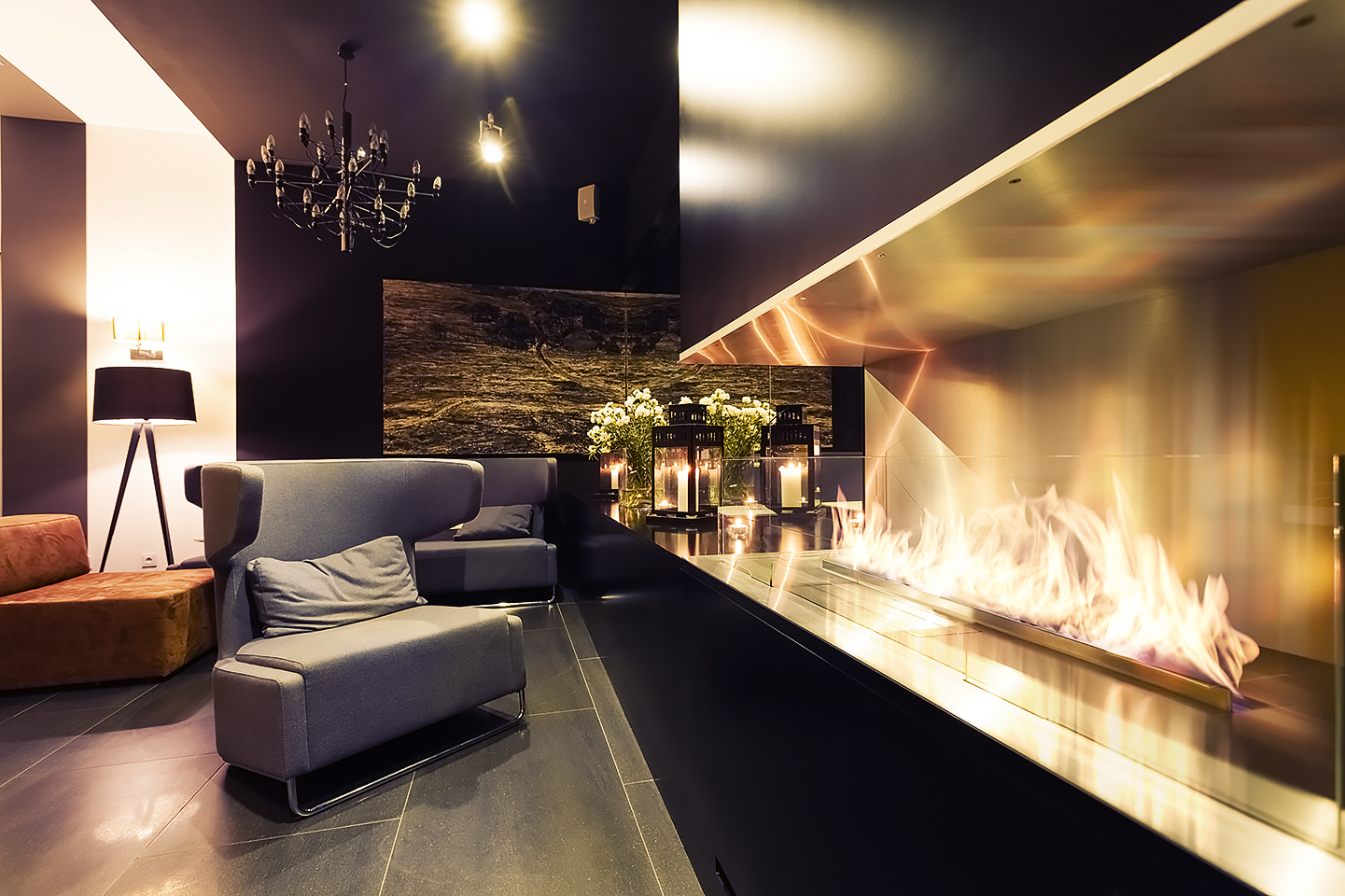 Caisson pour le modèle Fireline Automatic 4 dimension du brûleur L 1190 mm en acier inoxydable teinté noir mat. Ce caisson est ouvert des trois côtés.